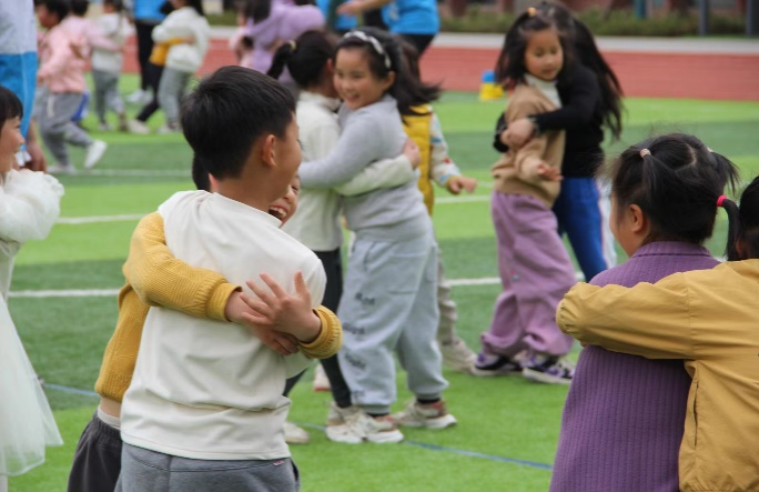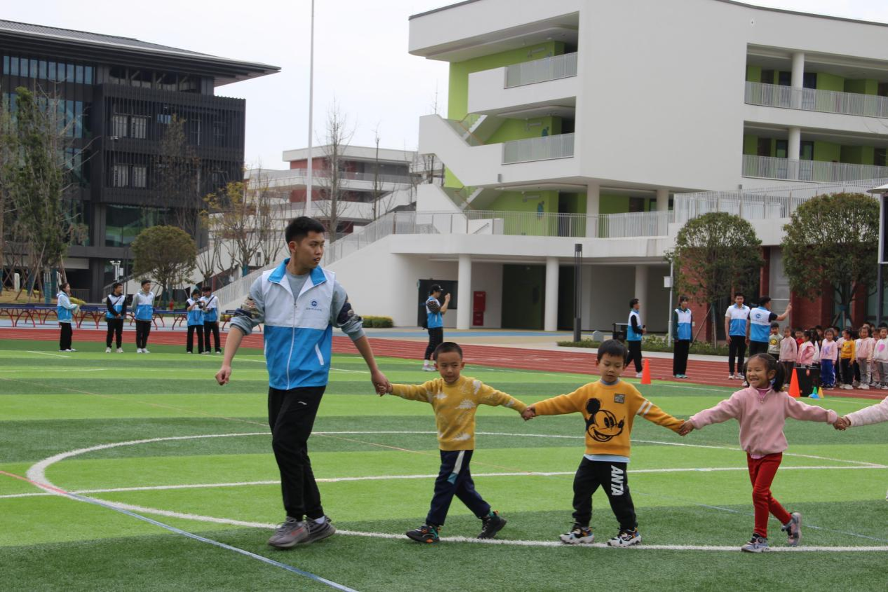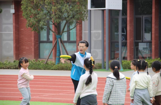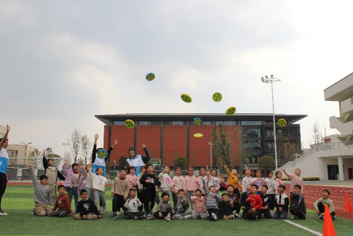 活动中,志愿者们带领小朋友们用拖拉机舞热身,一起配合进行“桃花朵朵开”游戏,在锻炼小朋友们身体协调能力的同时,增强团队意识。虽然七中小员工们此前并未接触过飞盘运动,但在志愿者们有序组织下,小朋友们热情参与飞盘活动,他们在活动中逐渐熟悉这一休闲运动,还通过团队联系增强了了互相帮助、团结协作的意识。希望通过这次活动,增强他们的体魄,培养他们对于体育的热爱,让他们在成长的道路上走得更加坚定和自信。