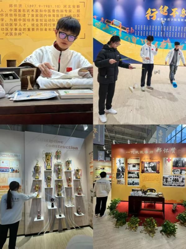 24级休体1班郜煜聪同学说:站在校史馆泛黄的《申报》剪报前,“四川省立体育专科公司”几个铅字灼痛了我的眼眶。八十余载风雨兼程的画卷在光影中次第展开:郑怀贤先生用银针编织的医武传奇,吴必显飞跃横杆时的矫健身姿,一代代师生在青砖场地上用汗水浇筑的体育丰碑。