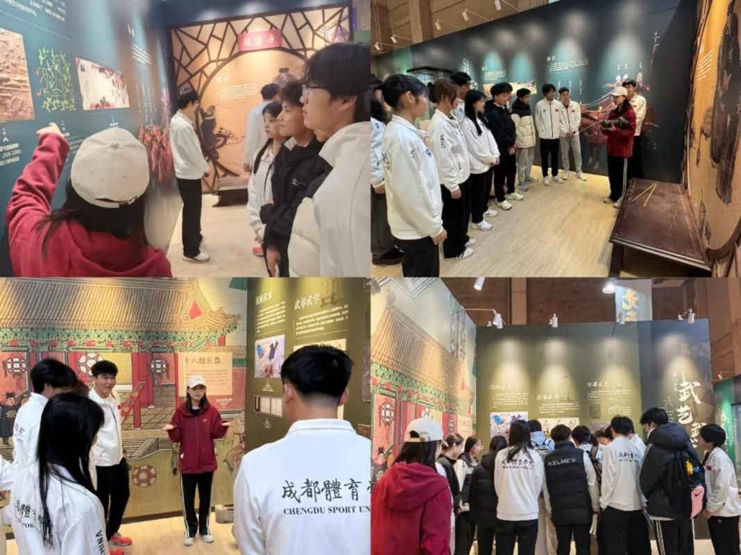 在校史馆讲解员的带领下,同学们依次参观了“烽火草创”、“开启航程”、“乘风破浪”、“踔厉奋发”四大主题展区。泛黄的历史照片、斑驳的训练器械、手写的武术典籍,生动再现了成体先辈在民族危亡之际,以体育人的热血担当救国图强。