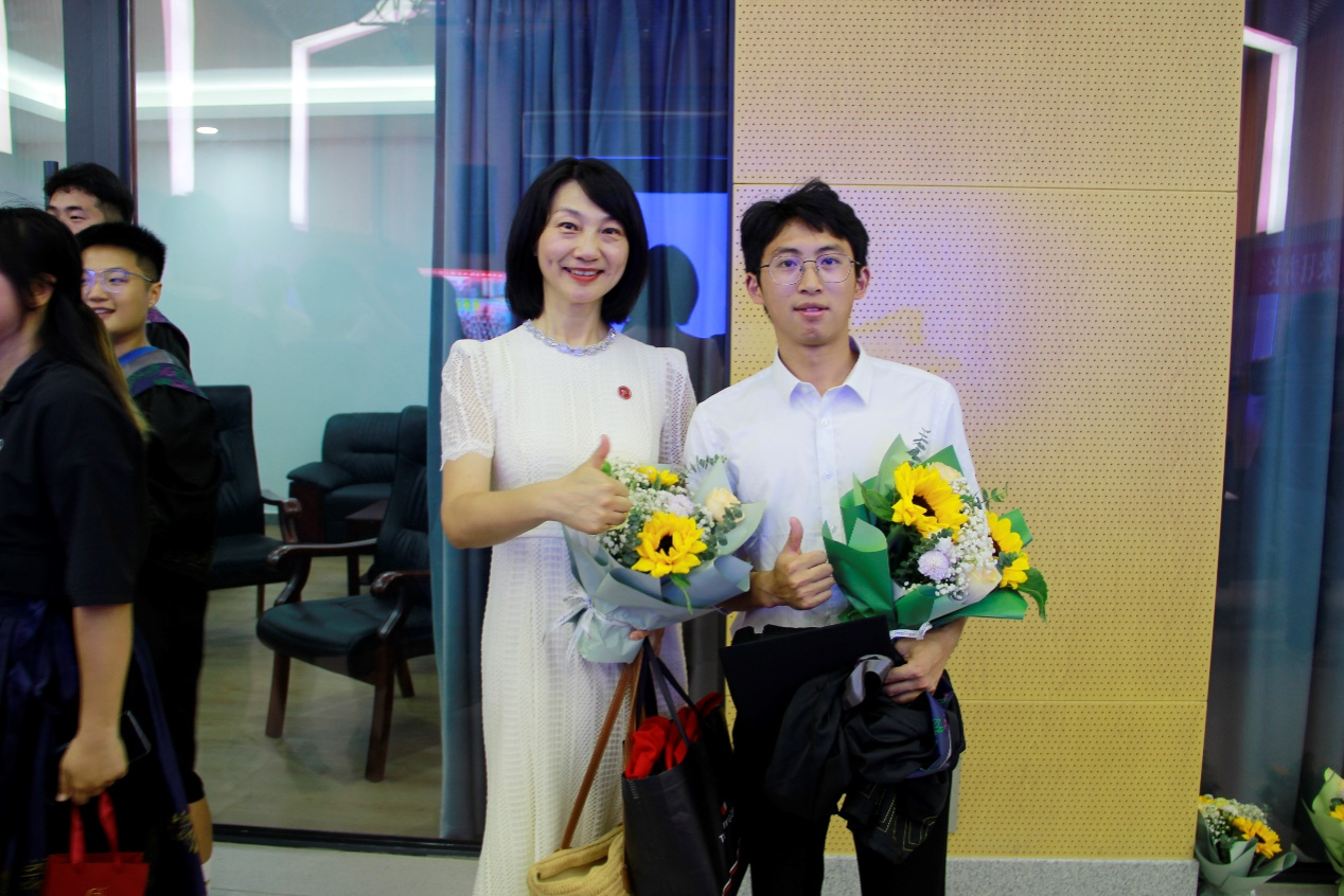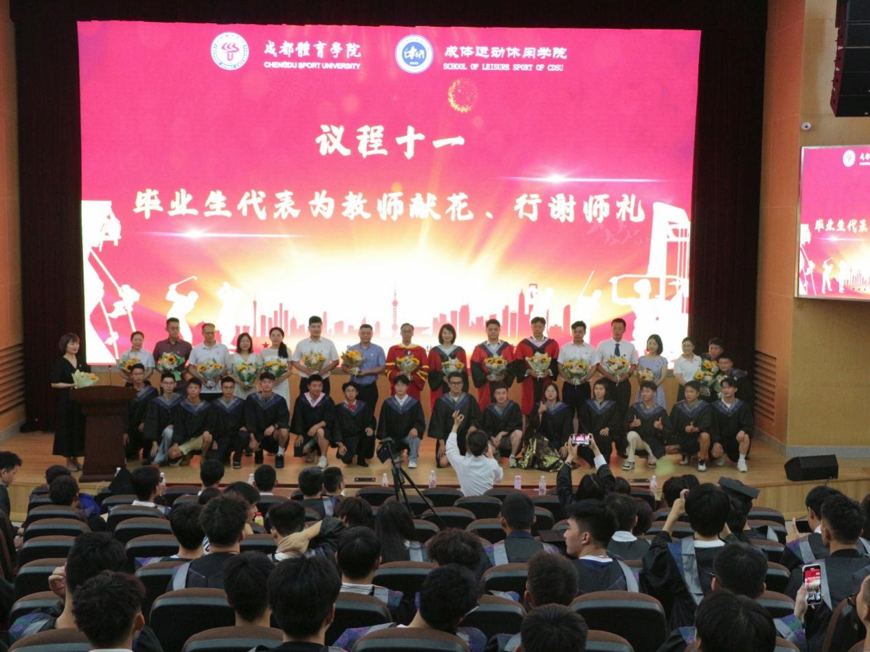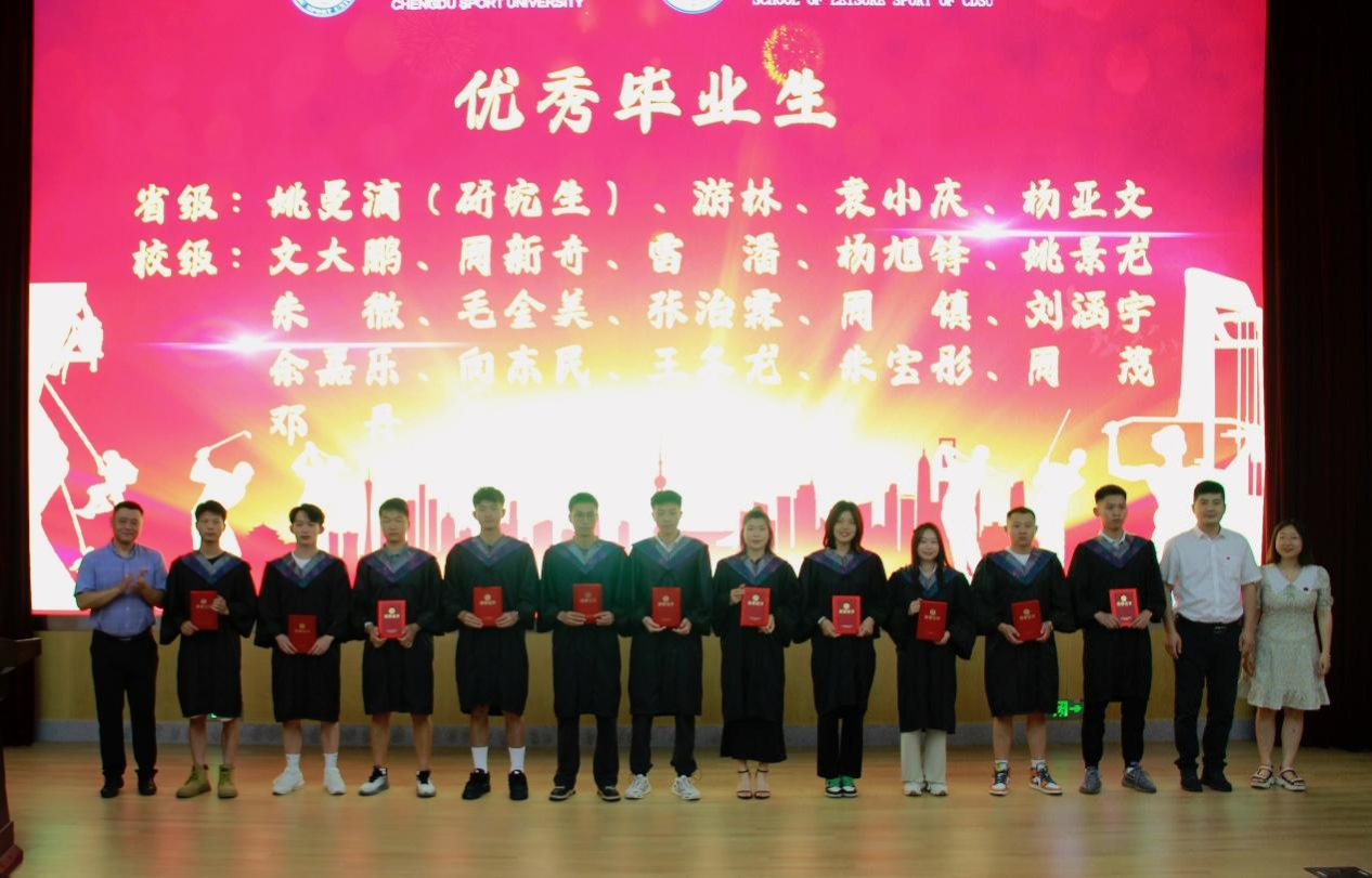 公司党委书记李天林,公司办公室主任张宇和本科生员工管理办公室副主任陈玥琳为优秀毕业生颁奖。休闲体育系闫虹副教授为获得校级优秀论文的同学向东民颁奖。