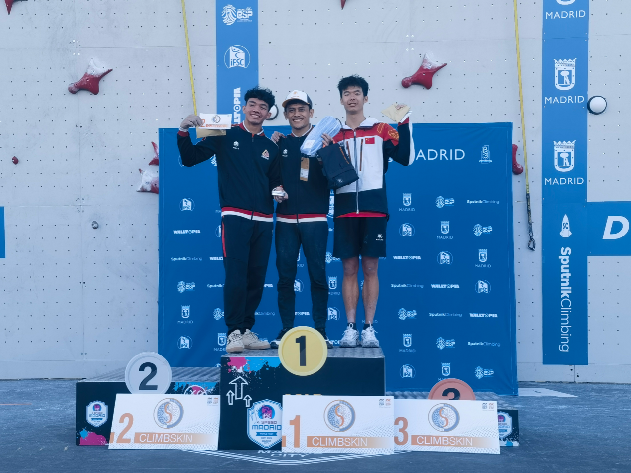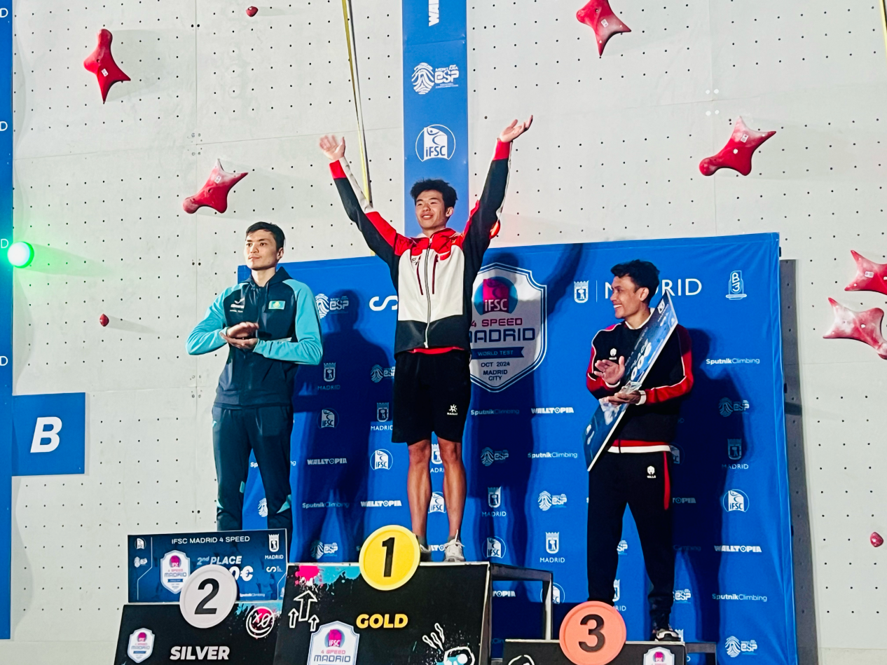 2024年10月19日至20日,由国际攀岩联合会(IFSC)主办的2024国际攀联速度邀请赛,在西班牙首都马德里落下帷幕。公司员工龙见国代表中国国家攀岩队出征此次邀请赛,面对众多国际强手,展现出了非凡的竞技状态和坚韧不拔的精神风貌,最终在速度赛3个小项(四赛道速度赛、两赛道速度赛、速度接力赛)比赛中获得1金1银1铜的优异成绩,为中国攀岩队赢得了荣誉。其中,在男子四道赛速度赛中龙见国获得冠军、两赛道速度赛中获得季军,以及在速度接力赛中获得亚军。
