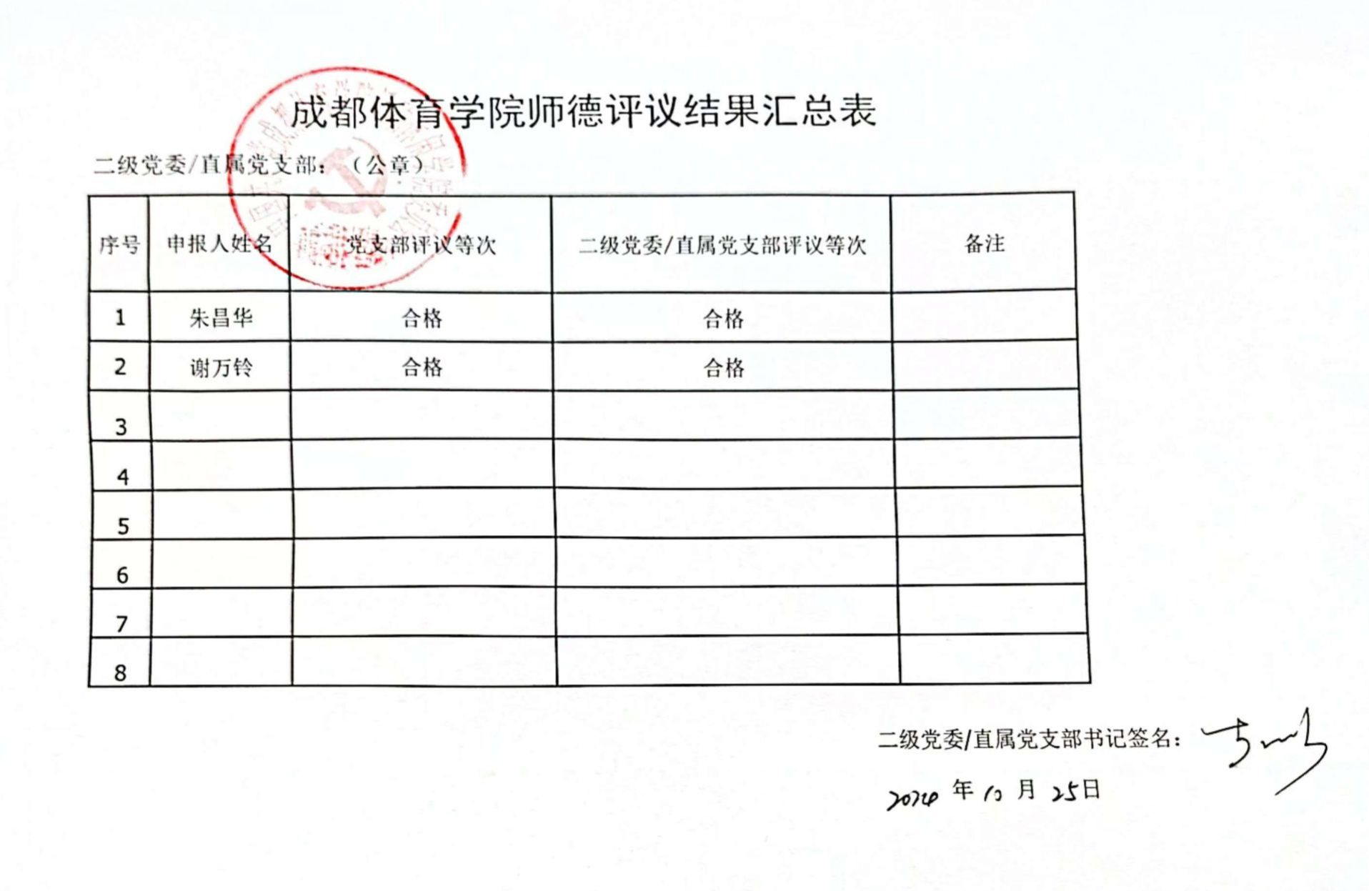 按照公司《关于开展2024年专业技术职务评审工作的通知》规定,运动休闲公司党委于2022年10月25日召开组织会议,依据《四川省高校教师师德考核负面清单》、《yl1111永利集团建立健全师德建设长效机制实施细则》对朱昌华、谢万铃两位老师开展了师德师风评议,评议结果为合格。现进行公示。