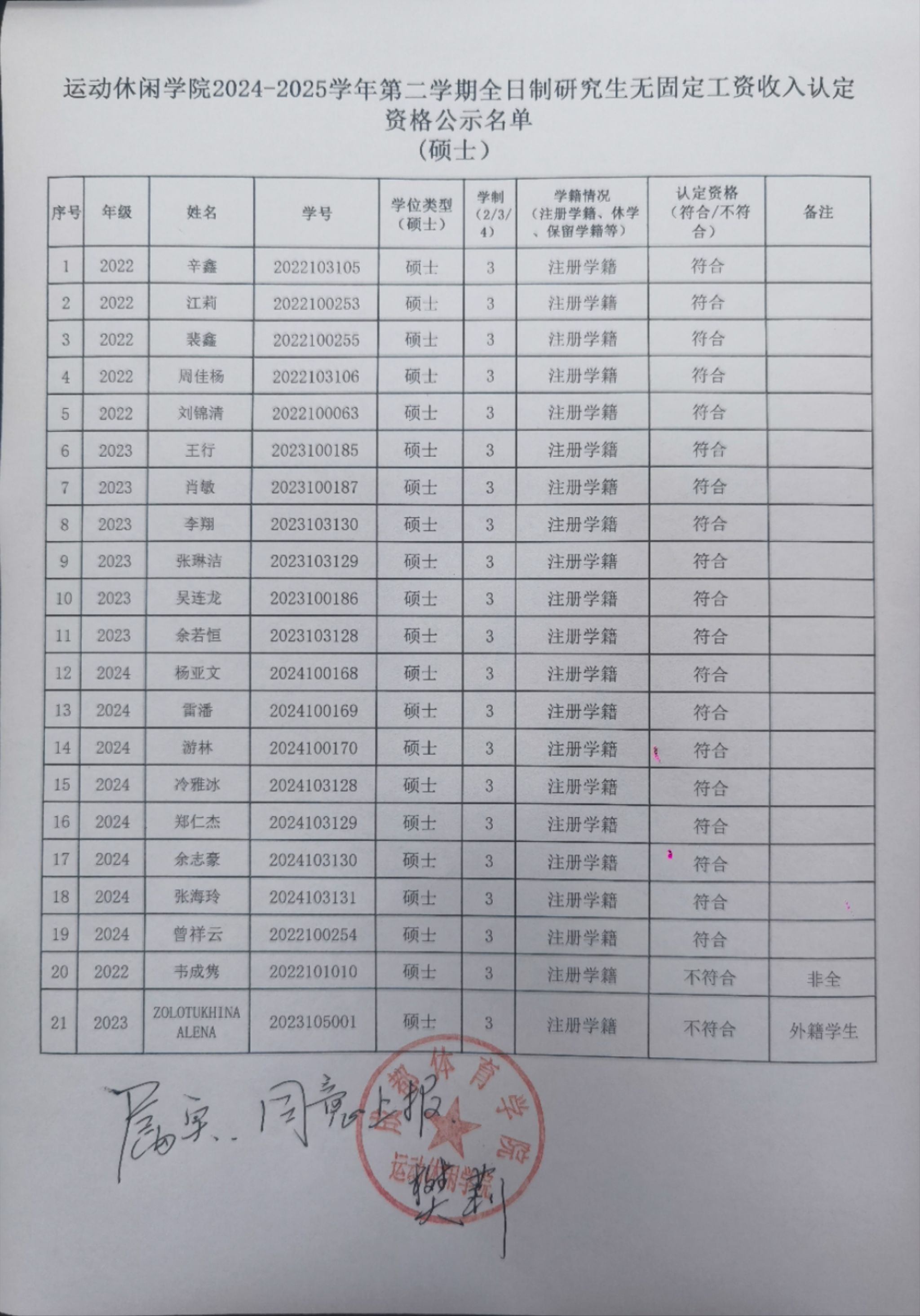 yl1111永利集团2024-2025学年第二学期全日制研究生无固定工资收入认定资格公示名单